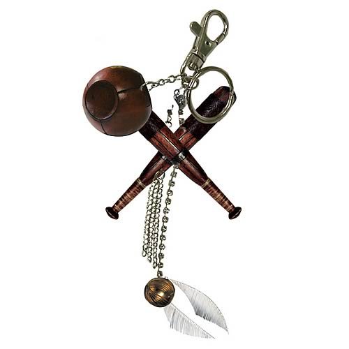 Featuring the Harry Potter logo and miniaturized versions of the Quidditch gaming equipment, show your magical school pride with this Quidditch Accessory Key Chain!