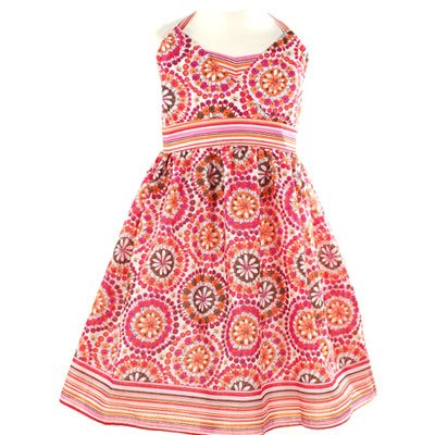Halter style multi colored paisley and striped dress is a must have for this spring and summer. Ties behind the neck. Perfect for any occasion for your little girl by Bonnie Jean.