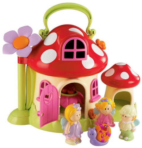 This mystical mushroom playhouse includes everything needed for a fairy good time. Includes 3 fairy figures, snail, table and a bed. Features convenient handle for take-along play and folds up for easy storage. Mushroom makes magical sounds when door is opened or closed.Ages 18 mos. and up.16"H x 5"W x 8.5"D.