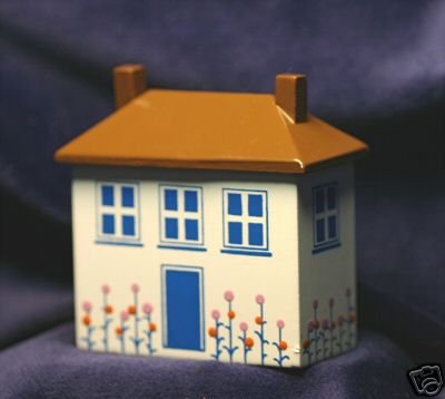 Handpainted solid wood dollhouse for the dollhouse. This is a solid piece - it does not open and it is painted white on the back. Measures: 2 1/2 in wide x 2 3/4 tall x 1 1/4 in deep