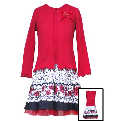Gorgeous red Floral Dress set for your little girl by Rare Editions. Knit red sleeveless top is attached to skirt. Ultra soft red cardigan rounds this outfit off, and makes it perfect for school and fall weather!